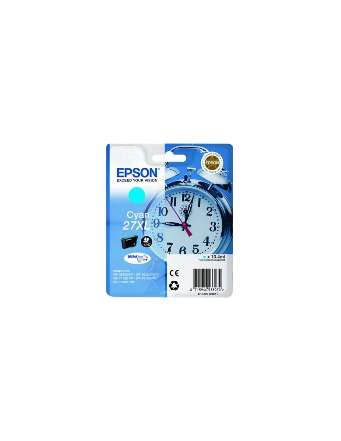 Ink Epson C13t27124012 Ciano Sveglia (Taglia Xl) X Wf-3620 Wf-7110Dtw Wf-7610Dwf Wf-7620Dtwf Wf-7210Dtw Wf-7710Dwf Wf-7720Dtwf