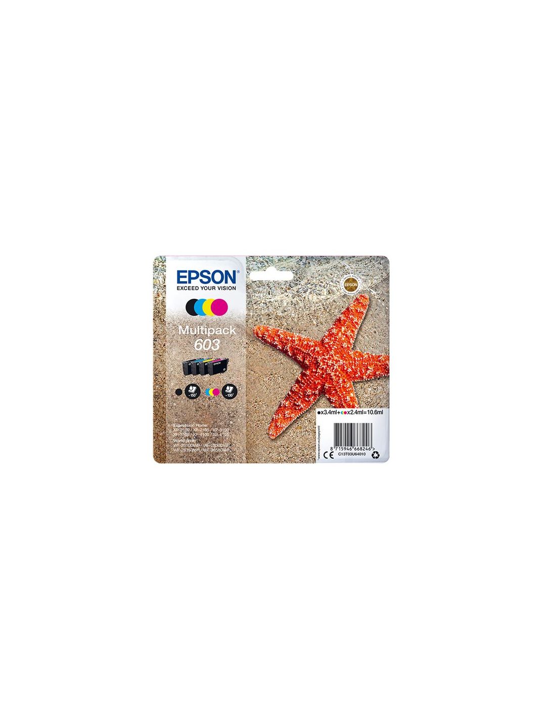 Multipack Epson 603 4C C13t03u64010 Stella Marina X Wf-2820Dwf Wf-2840Dwf Wf-2870Dwf Xp-2150 Xp-3150 Xp-4150