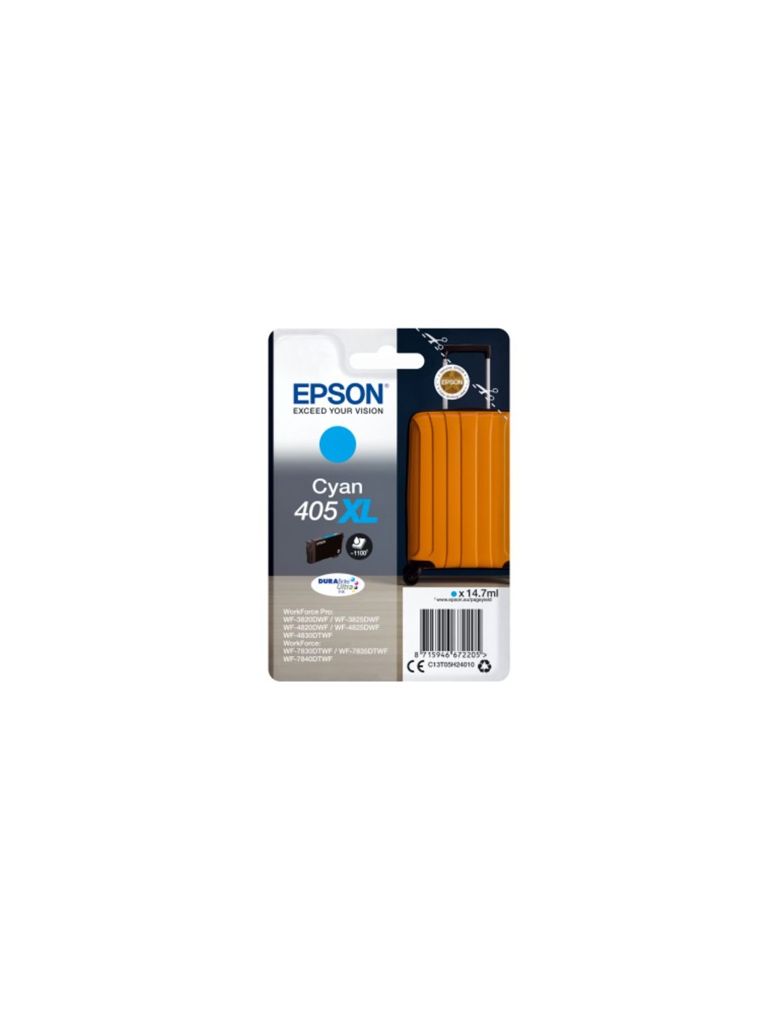 Ink Epson 405Xl C13t05h24010 Ciano Trolley X Wf-3820Dwf Wf-3825Dwf Wf-4820Dwf Wf-4830Dtwf Wf-3640Dtwf Wf-7830Dtwf Wf-7840Dtwf