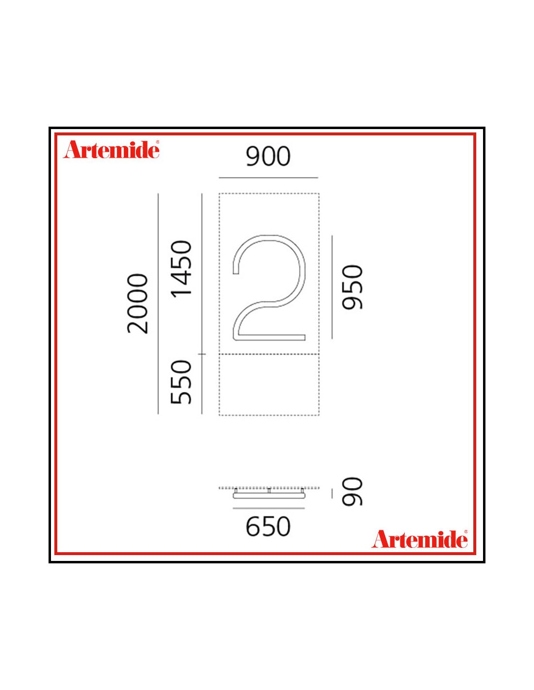 Artemide Alphabet Of Light Lampada Da Parete '2' E Solo Supporto